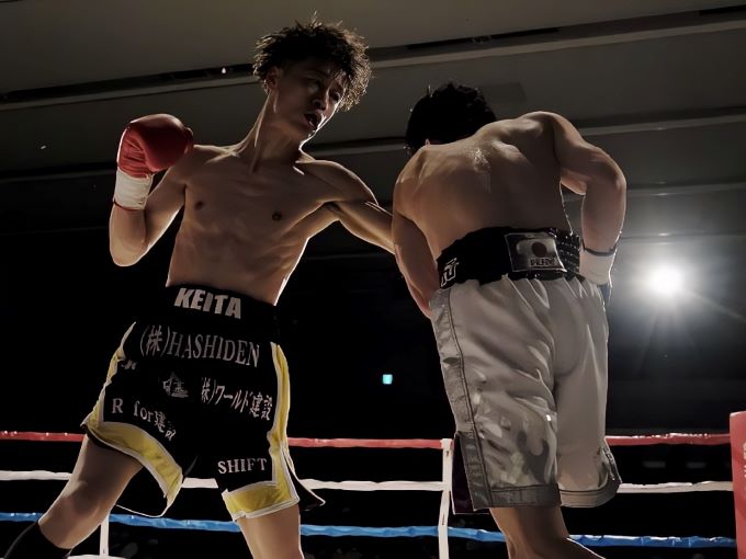 3回、中間距離で激しいパンチの応酬を繰り広げる中、圭太選手のボディ攻撃の見栄えがいい。