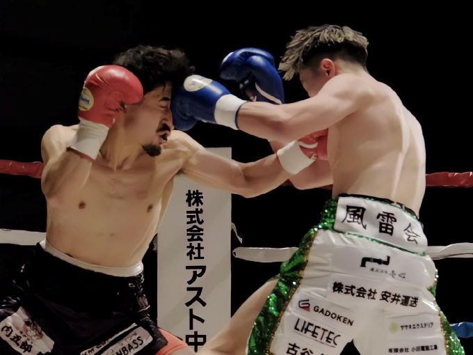 2回、正本選手は右ストレートを返すが、打ち終わりに真斗選手が左フックで顔を弾かれ思い通りの展開を作れず。